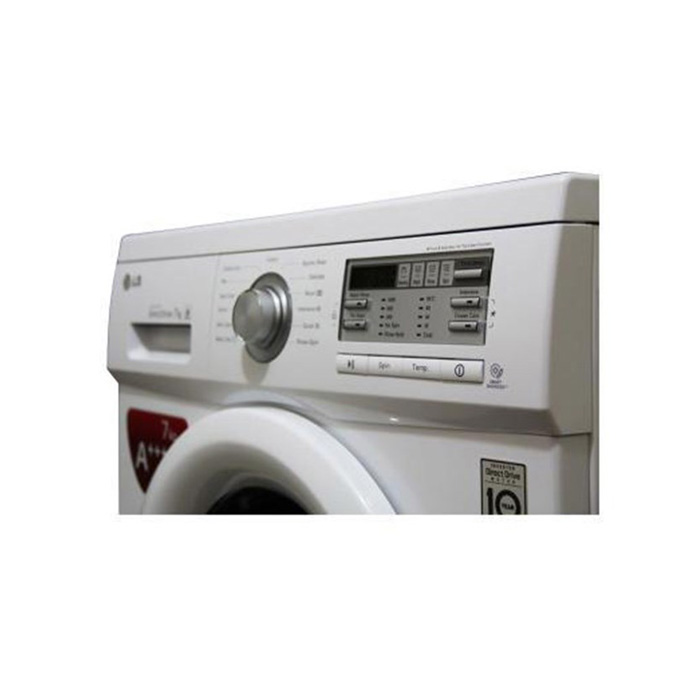 ماشین لباسشویی «الجی» مدل «WM-M71» یکی از محصولات کاربردی و بادوام این برند است که از ظرفیت دیگ 7 کیلوگرمی برخوردار است. دیگ داخلی آن از استیل ساخته شده است و برای پایین آوردن هرچه بیشتر مصرف انرژی هیتر آن از جنس سرامیک ساخته شده است؛ در نتیجه مصرف برق این محصول بسیار پایین و رتبه انرژی آن +++A است. این دستگاه با قدرت تشخیص وزن لباسها مصرف آب و مواد شوینده را نیز کاهش میدهد. به بهترین حالت برای شستوشوی لباسها رسیده است. همچنین به کمک موتور بدون تسمه Direct Drive که این محصول دارا است، قدرت حرکتی بیشتر، صدا و لرزش کمتر در این مدل به چشم میخورد. در قسمت بالای درب دستگاه، یک پنل تنظیمات قرار دارد که شامل دکمه روشن کردن ماشین لباسشویی و یک دکمه پیچی ولومی است. با چرخاندن این دکمه ولومی میتوانید برنامه شستوشوی مد نظر خود را با توجه به نیاز خود انتخاب کنید. تعداد 13 برنامه اتوماتیک از پیش تعیین شده روی این مدل وجود دارد. همچنین صفحهنمایش بزرگی در این قسمت تعبیه شده است که اعمال و مشاهده تنظیمات را سادهتر کرده است. قابلیت ضد چروک و ضد آلرژی از دیگر ویژگیهای این دستگاه است. الجی با خدمات گستردهای که در سطح ایران دارد توانسته است رضایت مشتریان زیادی را جلب کند.